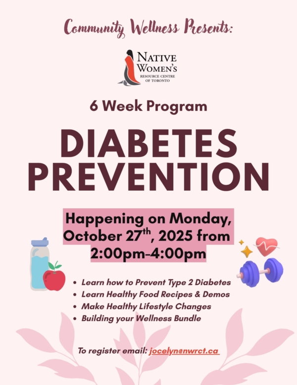 Join NWRCT on Mondays from 2:00 to 4:00 pm starting October 27th, 2025, for a 6-week Diabetes Prevention program. Email jocelyn@nwrct.ca for more info. See poster for details.