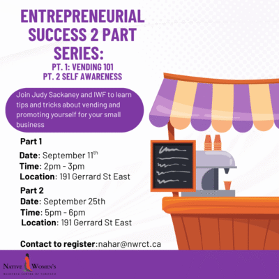 Join Judy Sackaney and IWF on Thursday, September 11, 2025, from 2:00 to 3:00 PM for a two-part series to learn tips and tricks on vending and self-awareness to help promote yourself and your work! Contact nahar@nwrct.ca to register.
