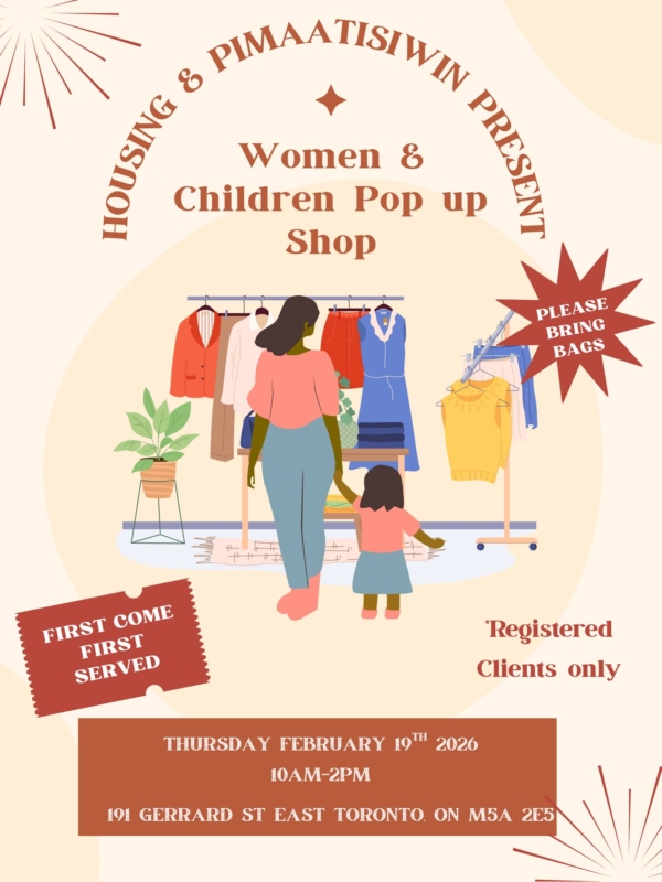 Join NWRCT on Thursday, February 19, 2026 from 10 AM-2 PM for Women & Children Pop-Up Shop. Please email samia@nwrct.ca for more info. See poster for details.